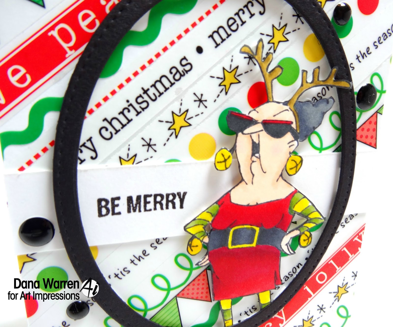 I placed her on my card back with foam tape and last added a few black enamel dots.